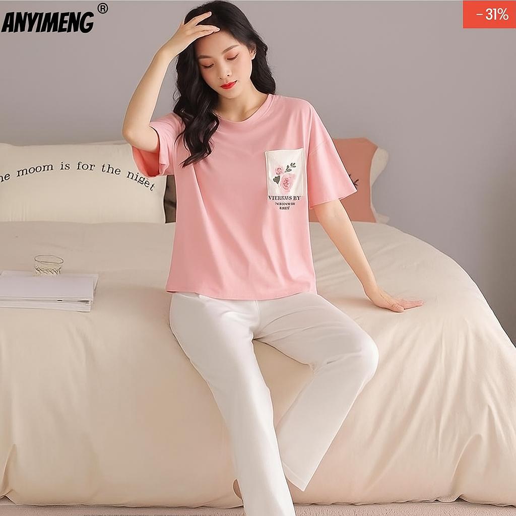 The elegant pink round neck shirt with stylish pocket print paired with comfortable trousers creates a simple yet attractive look. This night suit is ideal for summer wear, daily use, and all-season comfort.